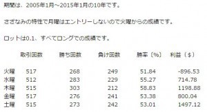 というのも、上記10年間のバックテスト結果を参考に、火曜日のみ